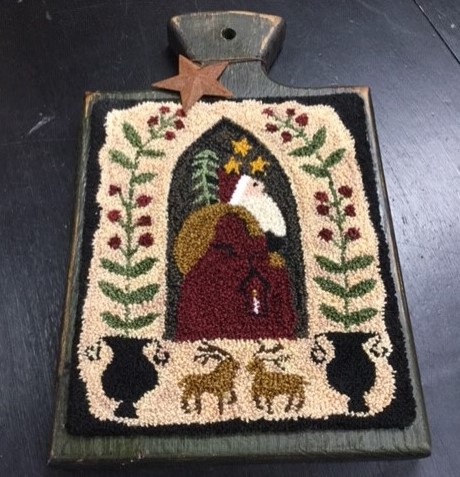 I enjoy needlepunching myself, but recognize that some people enjoy the look of needlepunch projects, but don't want to do the work themselves. I am offering for sale some of my finished pieces, mounted on a handmade painted, grained and antiqued oak board or "hornbook".
